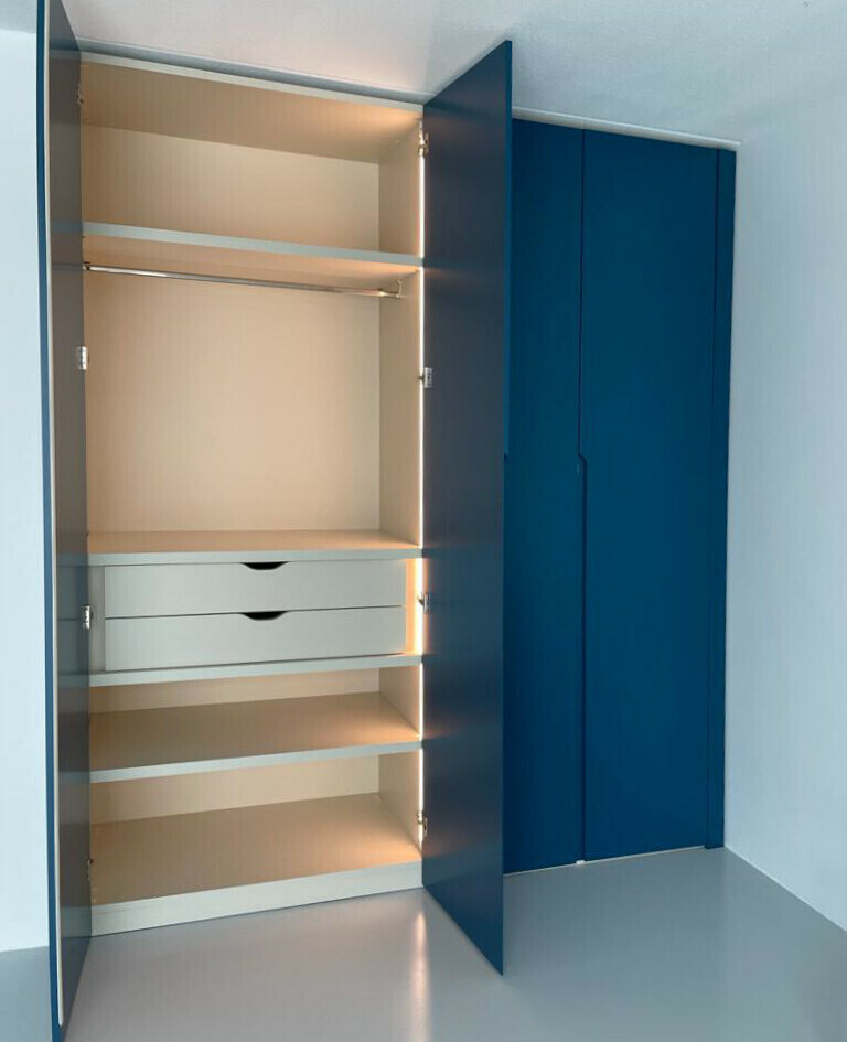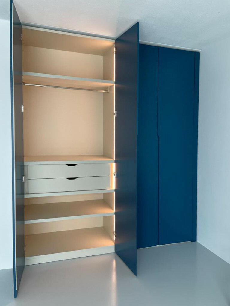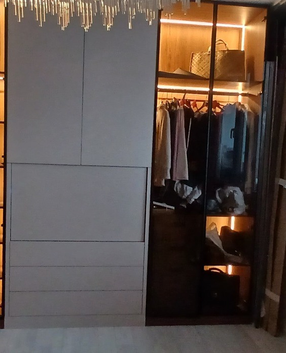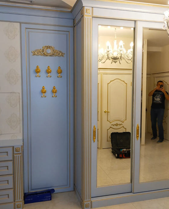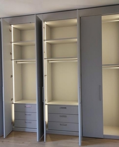Любой изготовленный на зак шкаф является эксклюзивныи и индивидуальным изделием со своими местами хранения. Кому то требуется много места под верхнюю одежду, кто то желает временами большие отделения для хранения аксессуаров и галстуков. Поэтому каждый шкаф в своей основе продумывается на стадии проектирования исключительно под каждого клиента, также как и в соответствии с этим оснащается определенной фурнитурой и опциями света и автоматизированности процессов внутри шкафа.